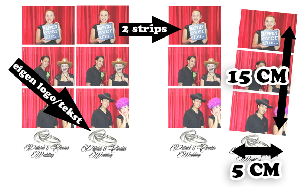 u kunt een keuze maken voor een 5x15 fotostrip u ontvangst dan 2x een foto strip met op elk de 3 genomen foto's